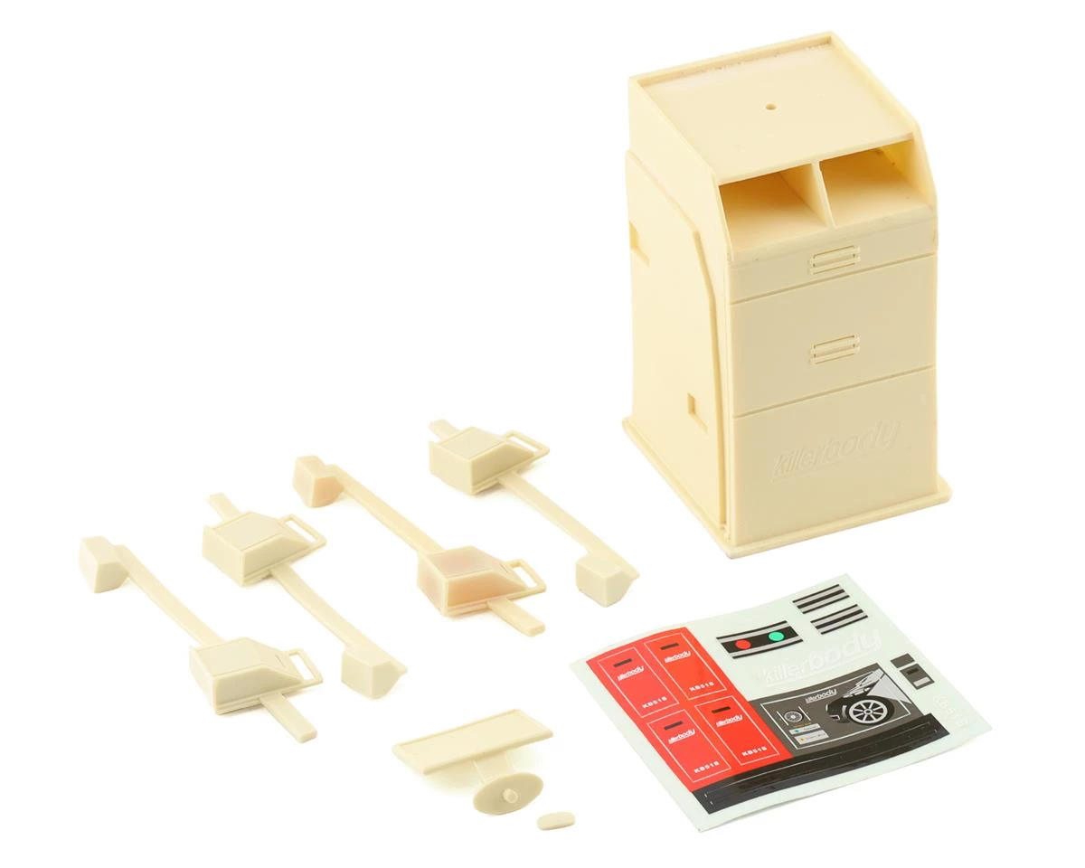 The Killerbody 1/10 Resin Four-Wheel Alignment Kit is a great option for your scale garage/diorama. Made from resin, this alignment kit features extreme detail. This set is a part of the Killerbody 1/10 Garage Series and only requires a paint job to complete the look. Package includes one scale four-wheel alignment kit.