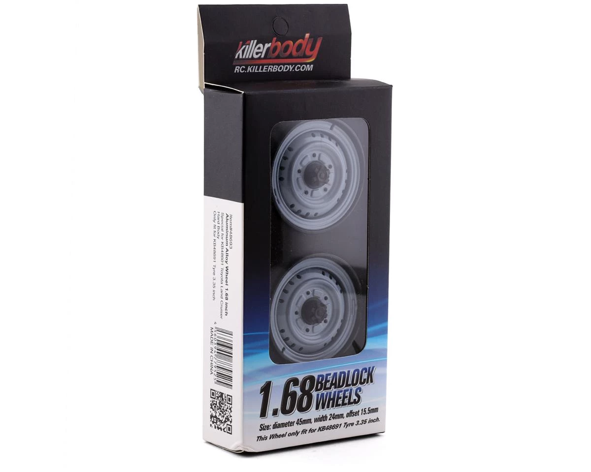 Killerbody 1.68″ Aluminum Scale Beadlock Wheel Set. These wheels are designed to create a more realistic look on the Killerbody LC70 body set (KLR-48601). Package includes two beadlock wheels.