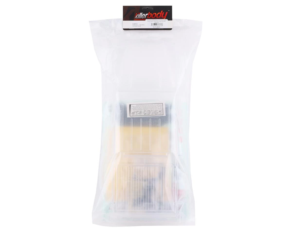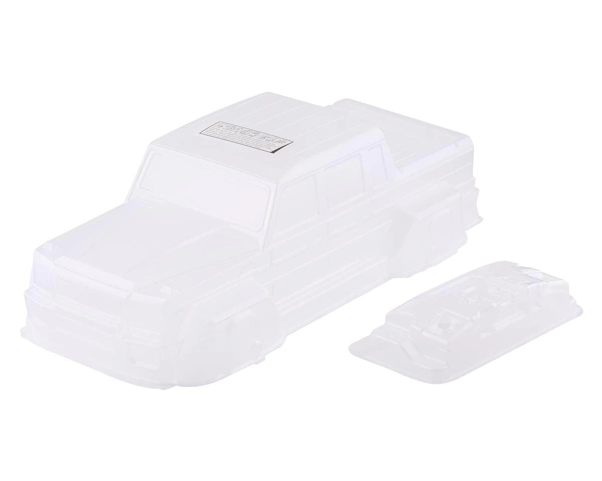 The Killerbody HORRI-BULL 1/10 Rock Crawler Body is a great optional body is intended for the Axial SCX10, SCX10II or a RC4WD Trail Finder 2 LWB (with a 314mm wheelbase chassis). This body comes clear and is ready for you to add your own custom paint scheme. Featuring clear light buckets and a scale bed roll bar, this body is a great option to give your rig a custom G-Wagon look. Package includes one clear crawler body.