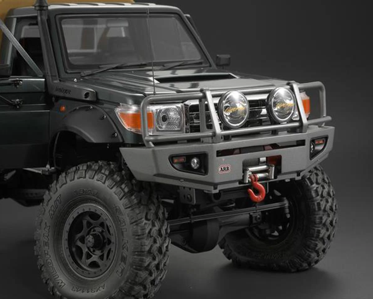 The Killerbody LC70 Aluminum Front Bumper with LED Set, is a great option for the Axial SCX10/SCX10 II and RC4WD Trail Finder 2 LWB equipped with the optional Killerbody LC70 Hard Body (KLR-48601). Made from lightweight aluminum, this bumper features light pods, crystal blue lens covers, winch mount and a CB antenna allowing for extreme scale realism. Package includes one grey bumper, two light buckets, six LEDs, one CB antenna, one decal sheet and hardware.