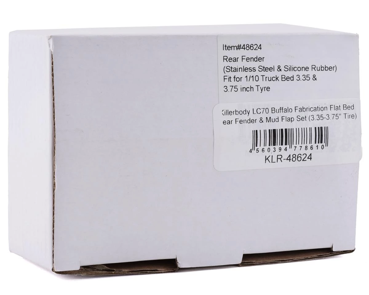 Killerbody LC70 Buffalo Fabrication Flat Bed Rear Fender and Mud Flap Set. These fenders and mud flaps are intended for trucks equipped with the optional Killerbody LC70 hard body and the Truck Flat Bed (KLR-48667). Package includes two rear fenders, two mud flaps and hardware.