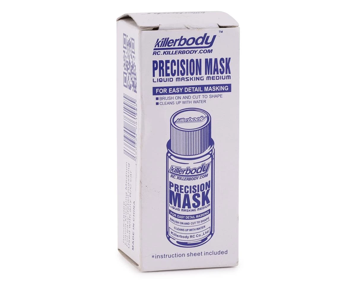The Killerbody Liquid Masking Fluid is a great option for applying the perfect paint scheme. Simply paint on your polycarbonate body and cut to desired shape. After paint has dried the masking fluid can be pealed off or removed with water. Package includes one bottle of liquid masking fluid.