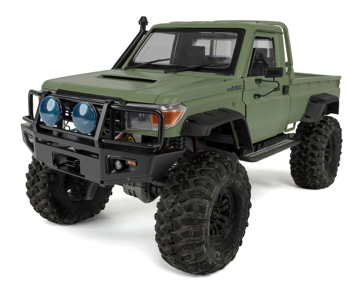 The Killerbody TRX-4 Toyota Land Cruiser LC70 1/10 Rock Crawler Hard Body Kit is a great option for the Traxxas TRX-4. This ABS plastic body features realistic scale details such as the body lines, front grill, light buckets, hood mounted washer jets, minimal exterior screws and so much more. Many optional parts are available separately so you can build your truck and add details to create a truly unique, one of a kind truck. Package includes one pre-painted green, complete hard body set that is ready for assembly.