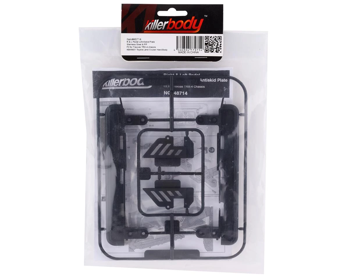 Killerbody Traxxas TRX-4 LC70 Rock Slider Set. This slider set is intended for the Traxxas TRX4 equipped with the optional LC70 hard body. Package includes two sliders, two slider covers and hardware.