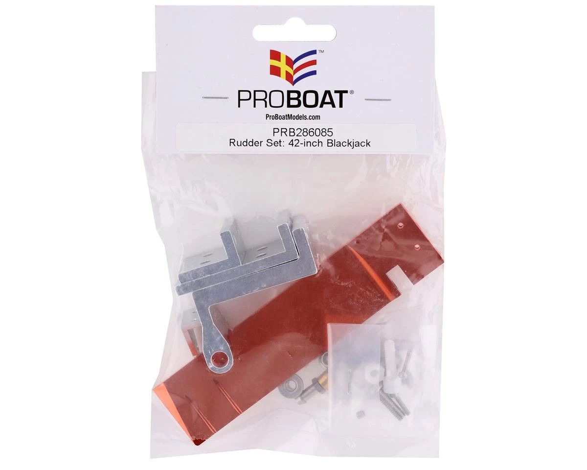 Pro Boat Blackjack 42 Rudder Set. This replacement rudder set is intended for the Pro Boat Blackjack 42. Package includes one rudder mount, one rudder mount assembly and hardware.