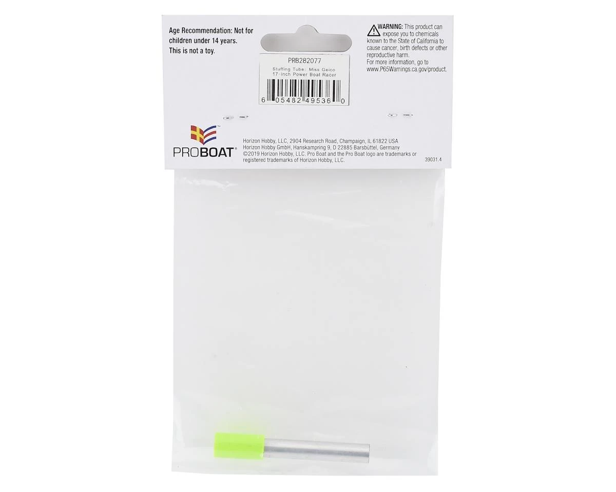 This is a replacement Pro Boat Miss Geico Power Boat Stuffing Tube, intended for use with the 17″ Power Boat Racer Deep-V “Miss Geico” Brushless Boat.