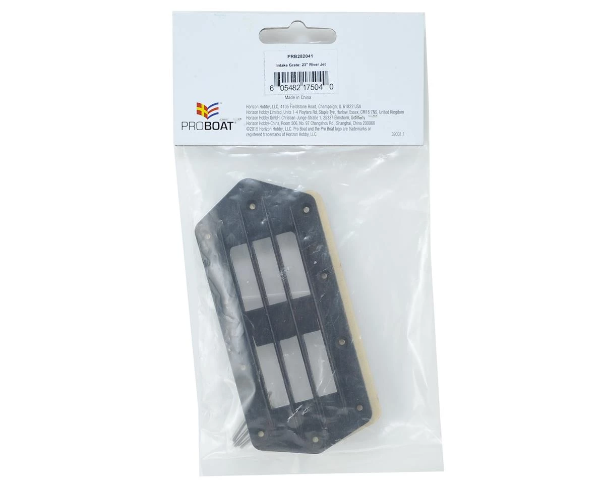 This is a replacement Pro Boat Jet Pump Intake Grate for use with the River Jet 23″ Boat. Package includes grate, foam pad and hardware.