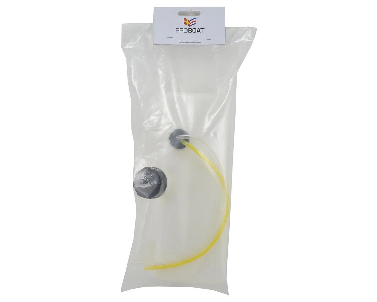 This is a replacement Pro Boat Rockstar Fuel Tank. This fuel tank includes the fuel cap and installed tubing.