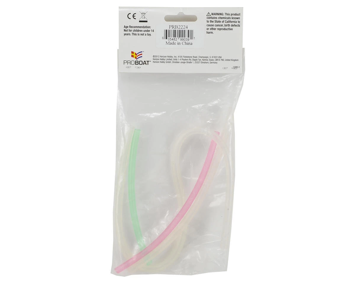 This is a replacement Pro Boat Silicone Tubing Set. This is a replacement for the Impulse 31, but may be compatible with other models as well. Package includes one 15 3/4″ length and one 6 1/2″ length of clear tubing, as well as one 4 1/2″ length of green tubing and one 5 3/4″ length of pink tubing.