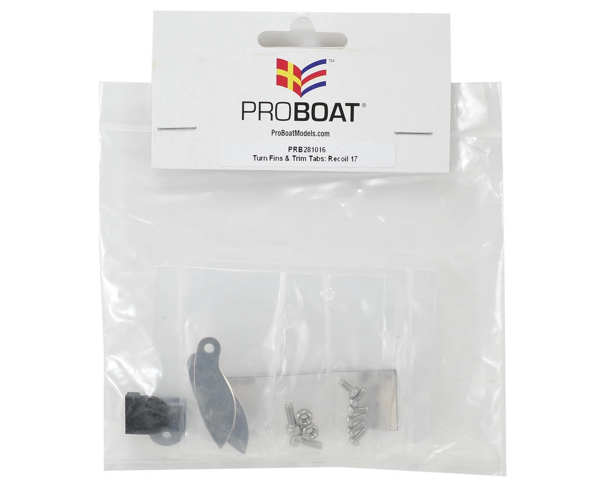 This is a replacement Pro Boat Recoil 17 Turn Fin & Trim Tab Set. Package includes turning fin, trim tabs and hardware.