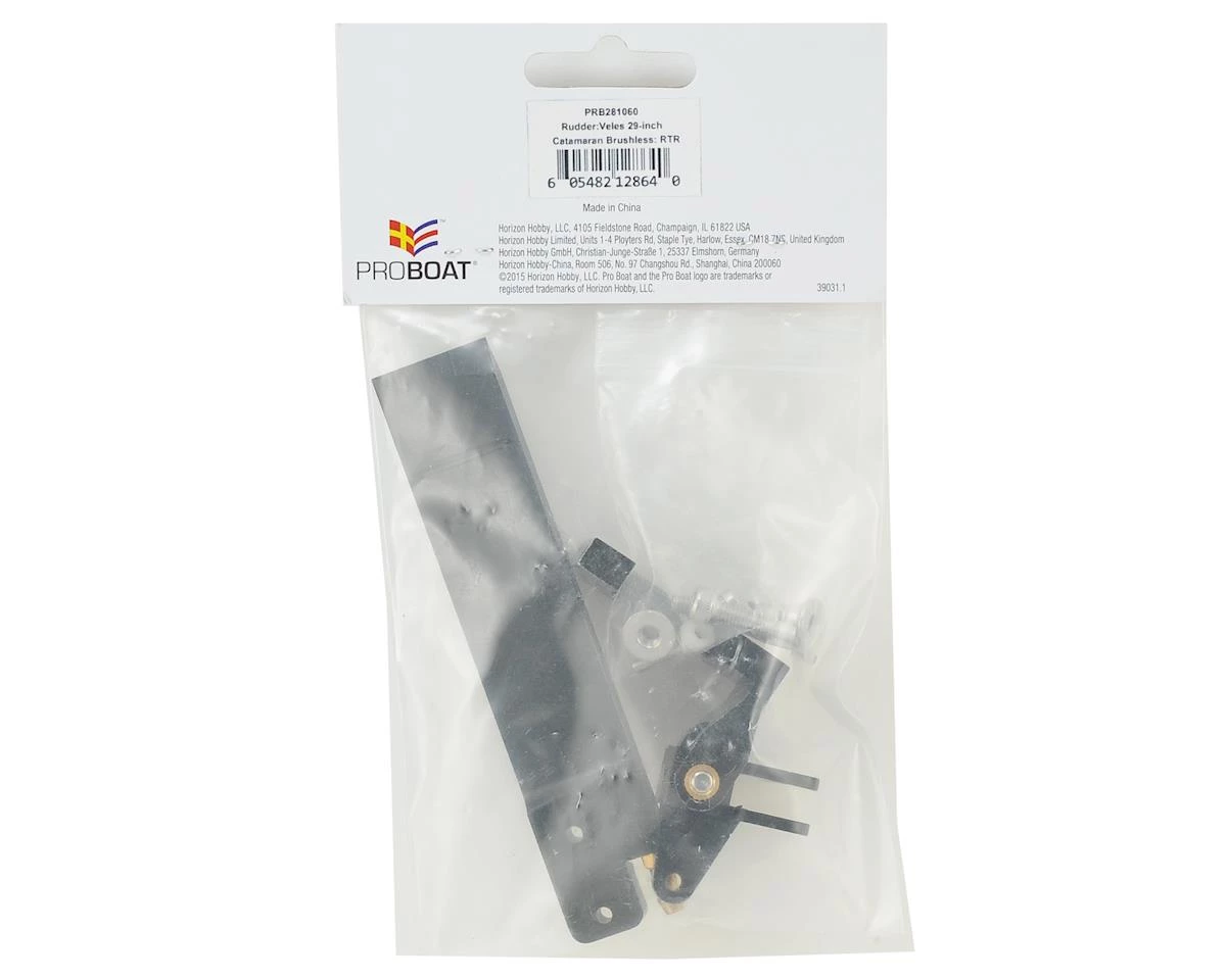 This is a replacement Pro Boat Veles 29 Rudder, with mounting hardware.