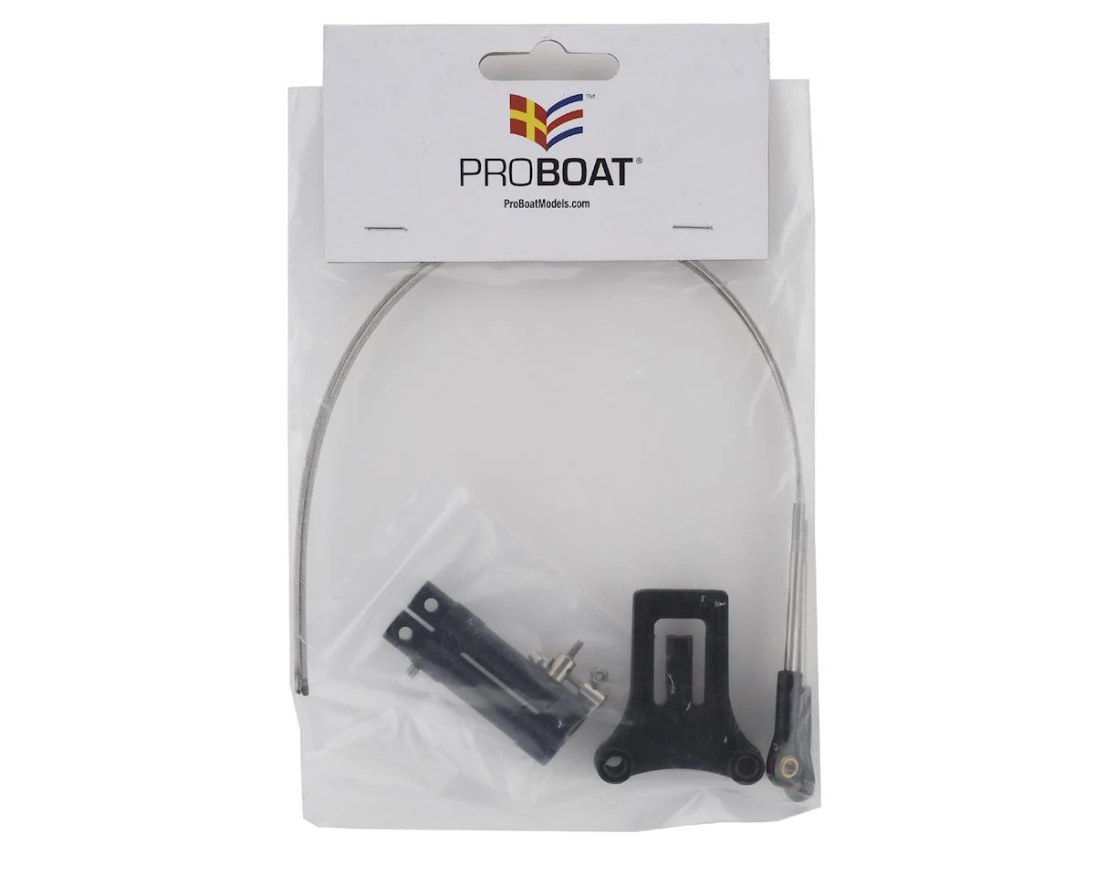 This is a replacement Pro Boat GEICO Zelos 36 Rudder Pushrod Set, intended for use with the Zelos 36″ Twin Brushless Catamaran.